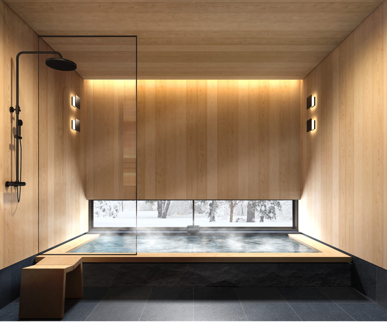 ✔ A Japanese onsen-style natural stone bath (5-person capacity)