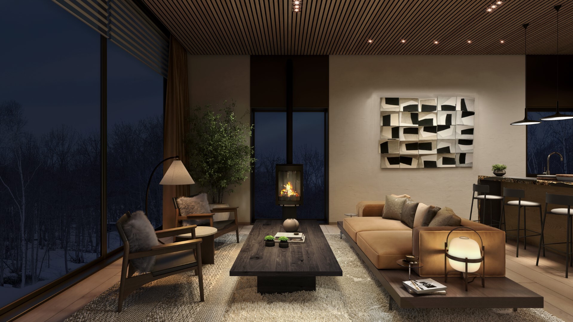 The modern Scandinavian-Japanese inspired exterior, envisioned by Craig Takahata of Zoo Design, reflects a seamless blend of luxury and nature. With a strong background in high-end resort architecture for brands like Shangri-La and Raffles, Takahata has crafted a residence that exudes stature, modernity, and harmony within the Koa estate.