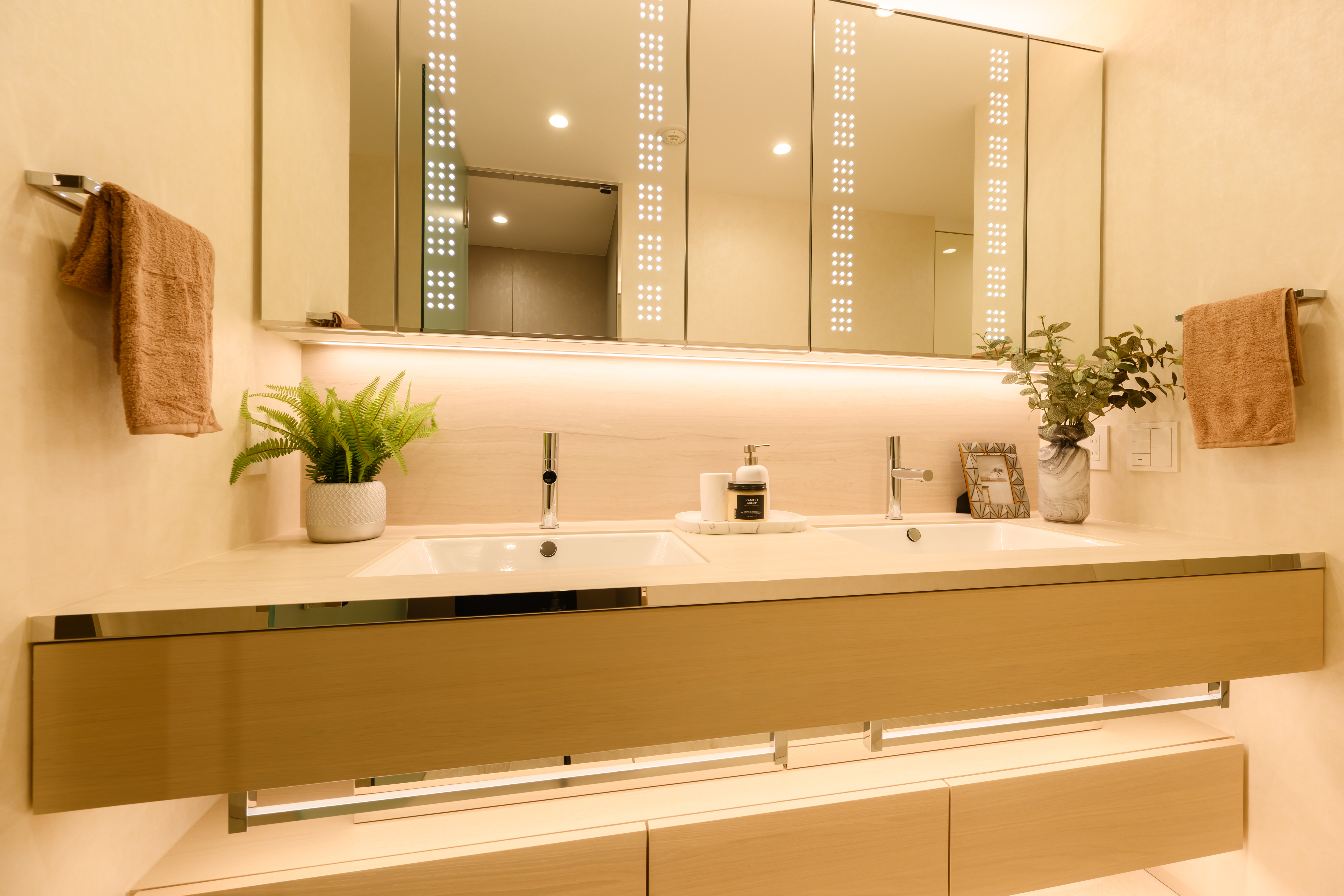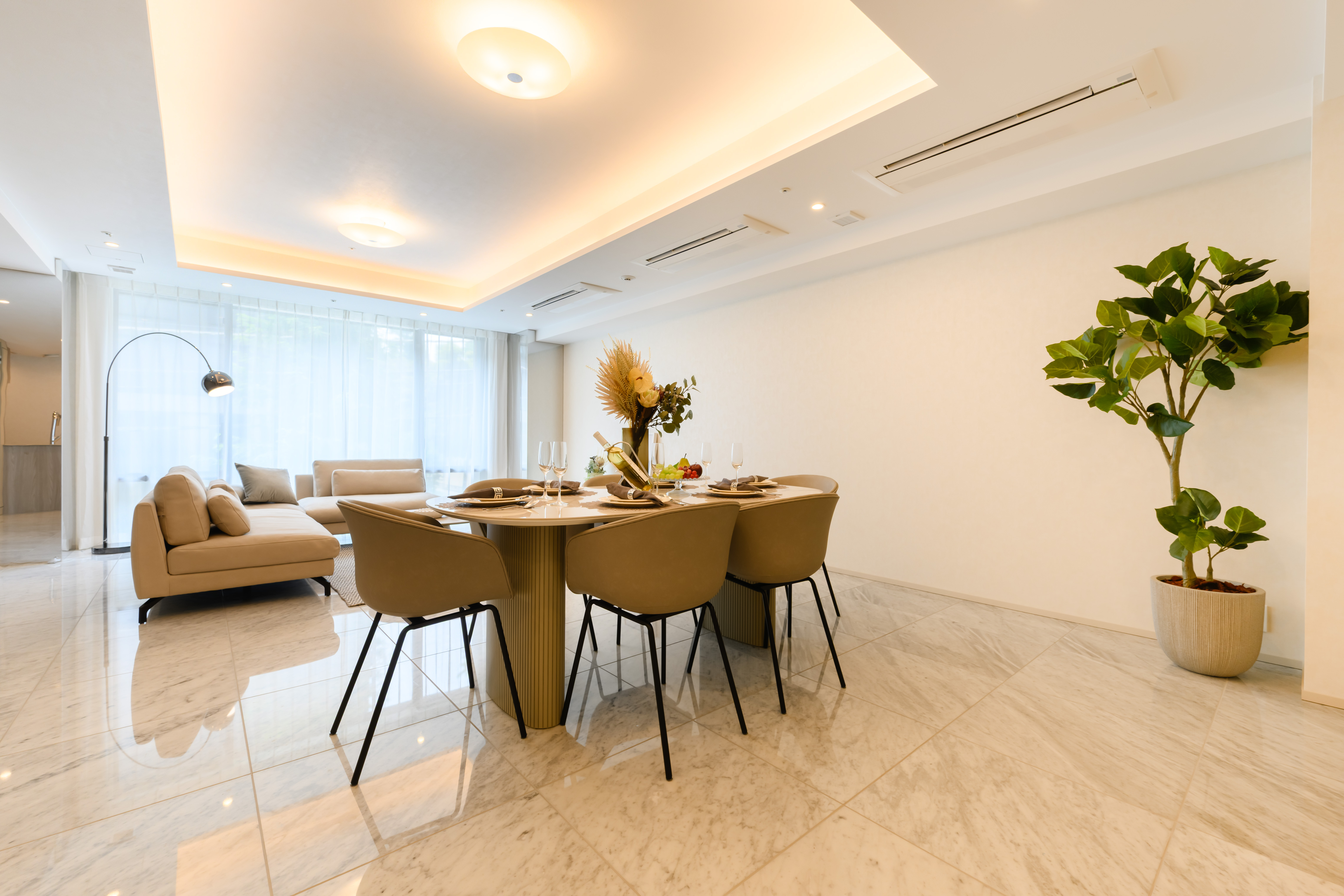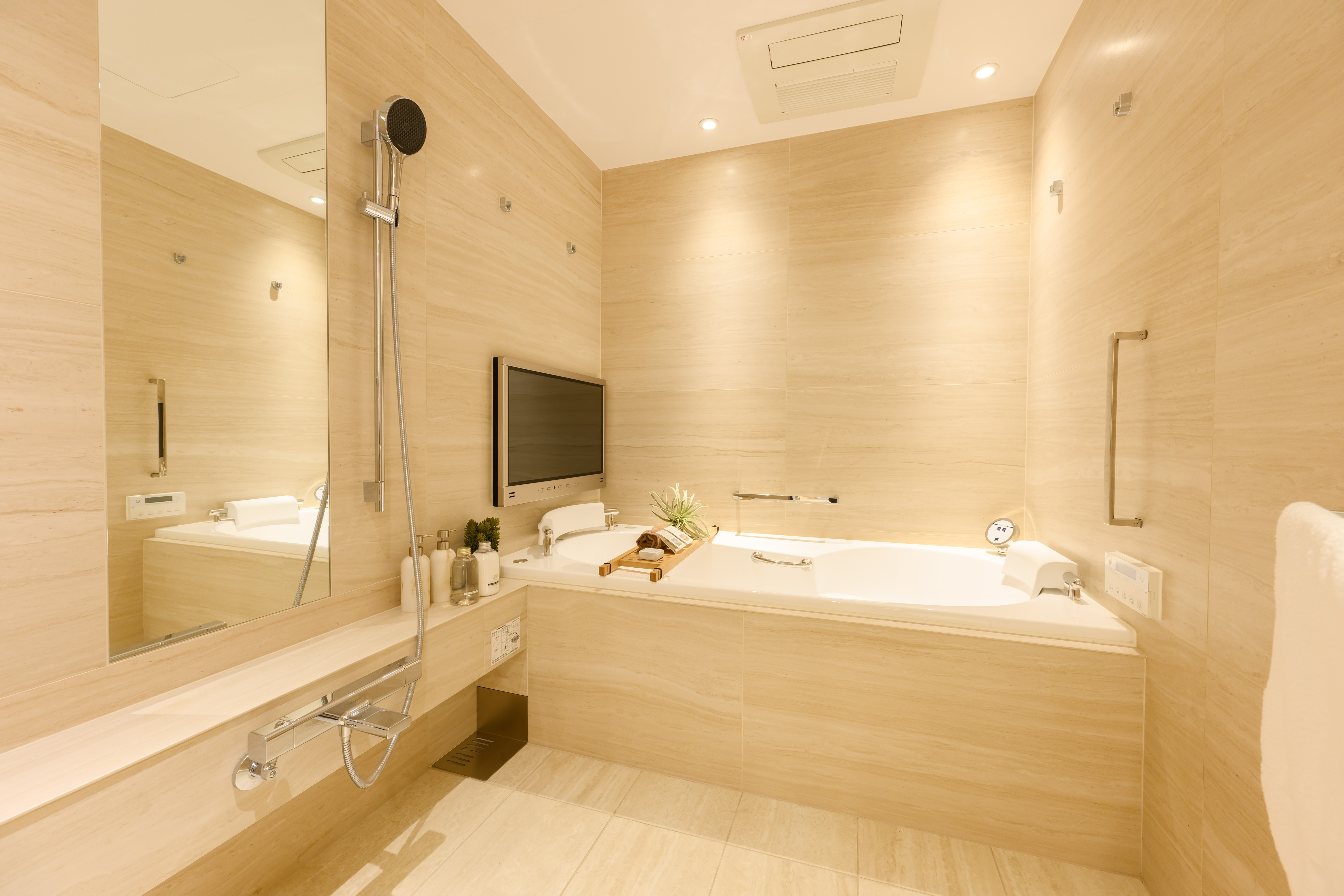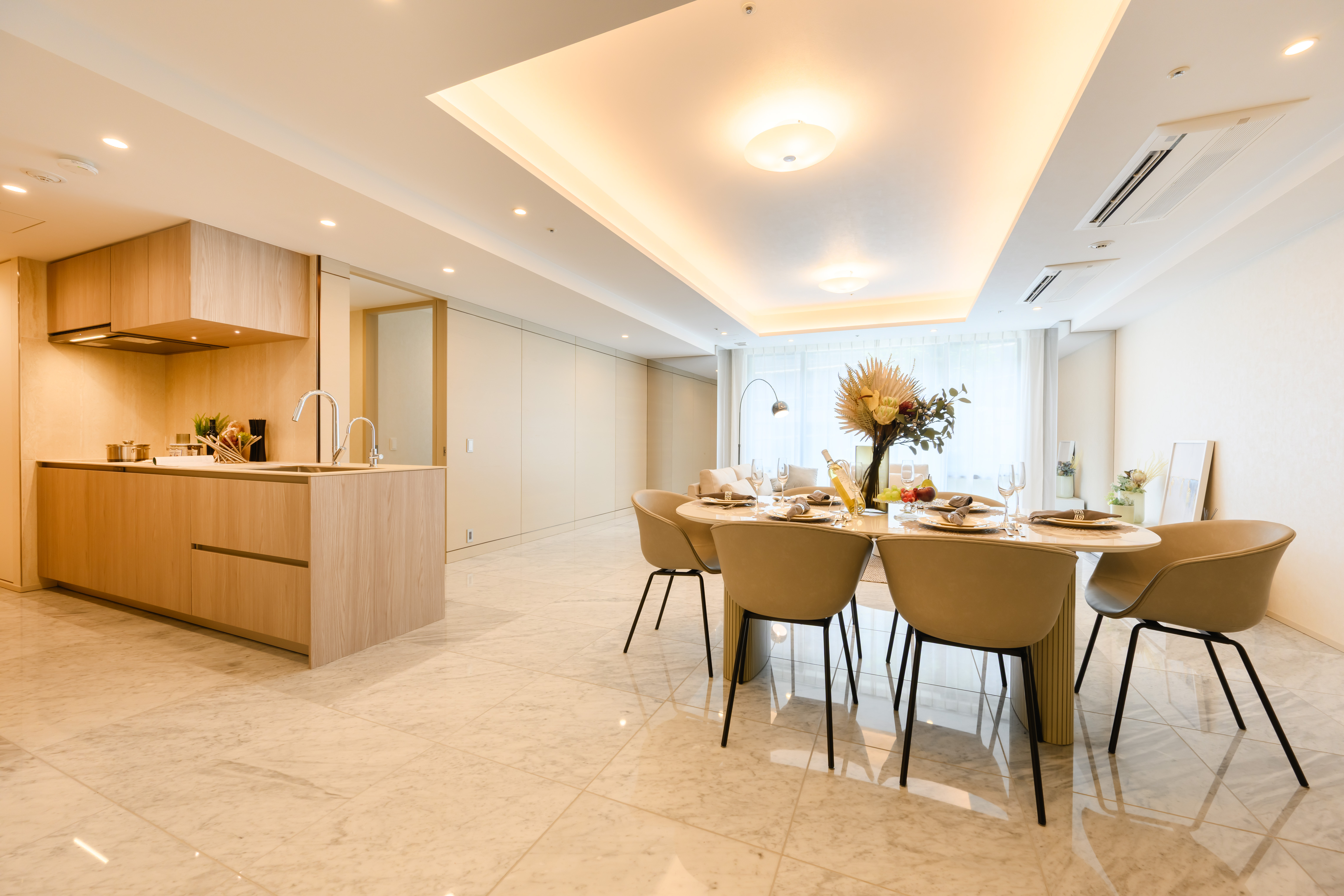 Bathed in natural light from its southeast facing orientation, the residence offers a generous 57 sqm (34.7 jo) LDK with natural stone flooring, two elegant walk in closets, a double vanity bathroom, and a private balcony overlooking lush greenery.