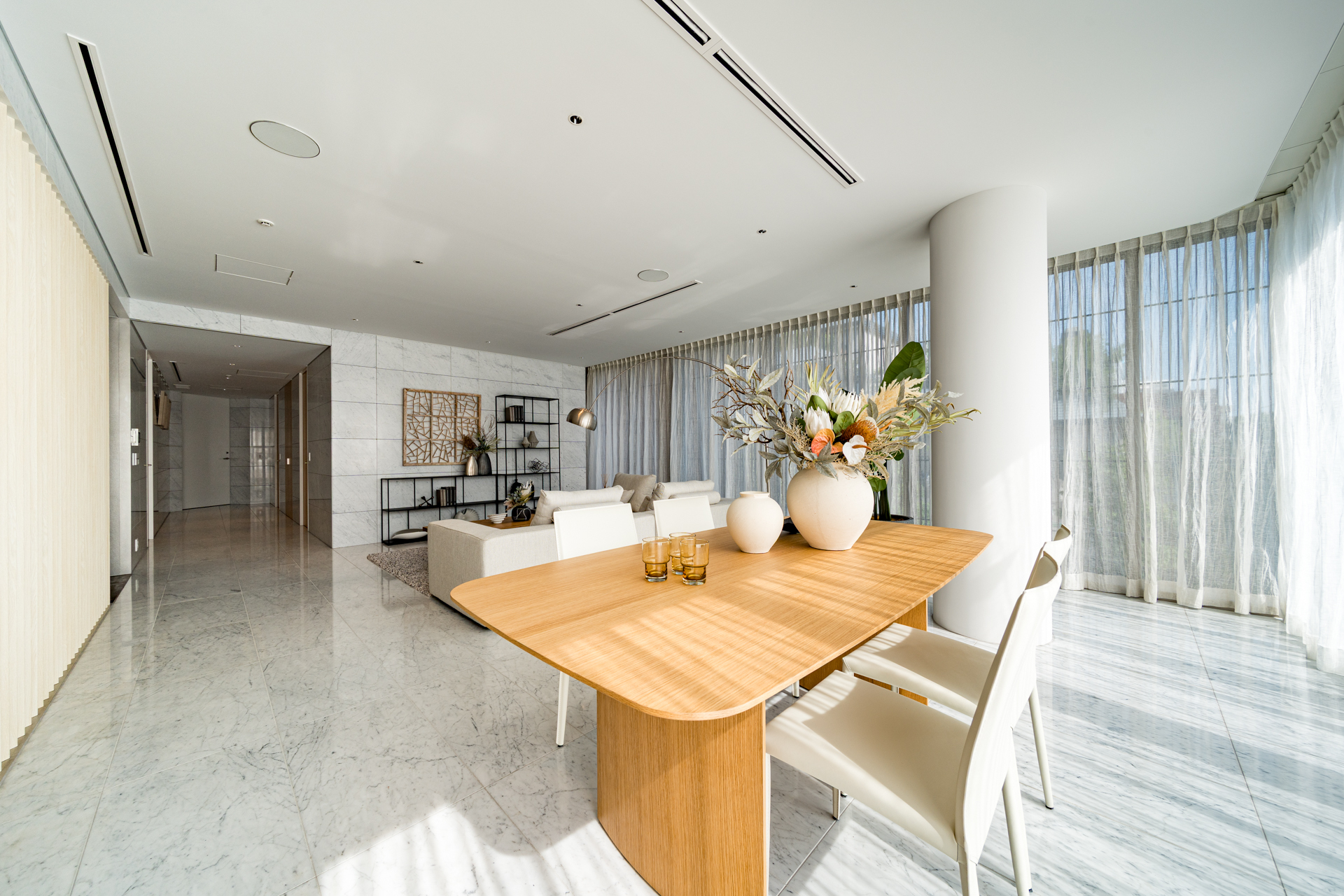 Elegant marble is used in the living/dining area and hallway , and a built-in wine cellar is installed on the LD side. Furthermore, it features luxurious specifications with meticulous attention to detail, including an equipped refrigerator, washer/dryer, and dishwasher.