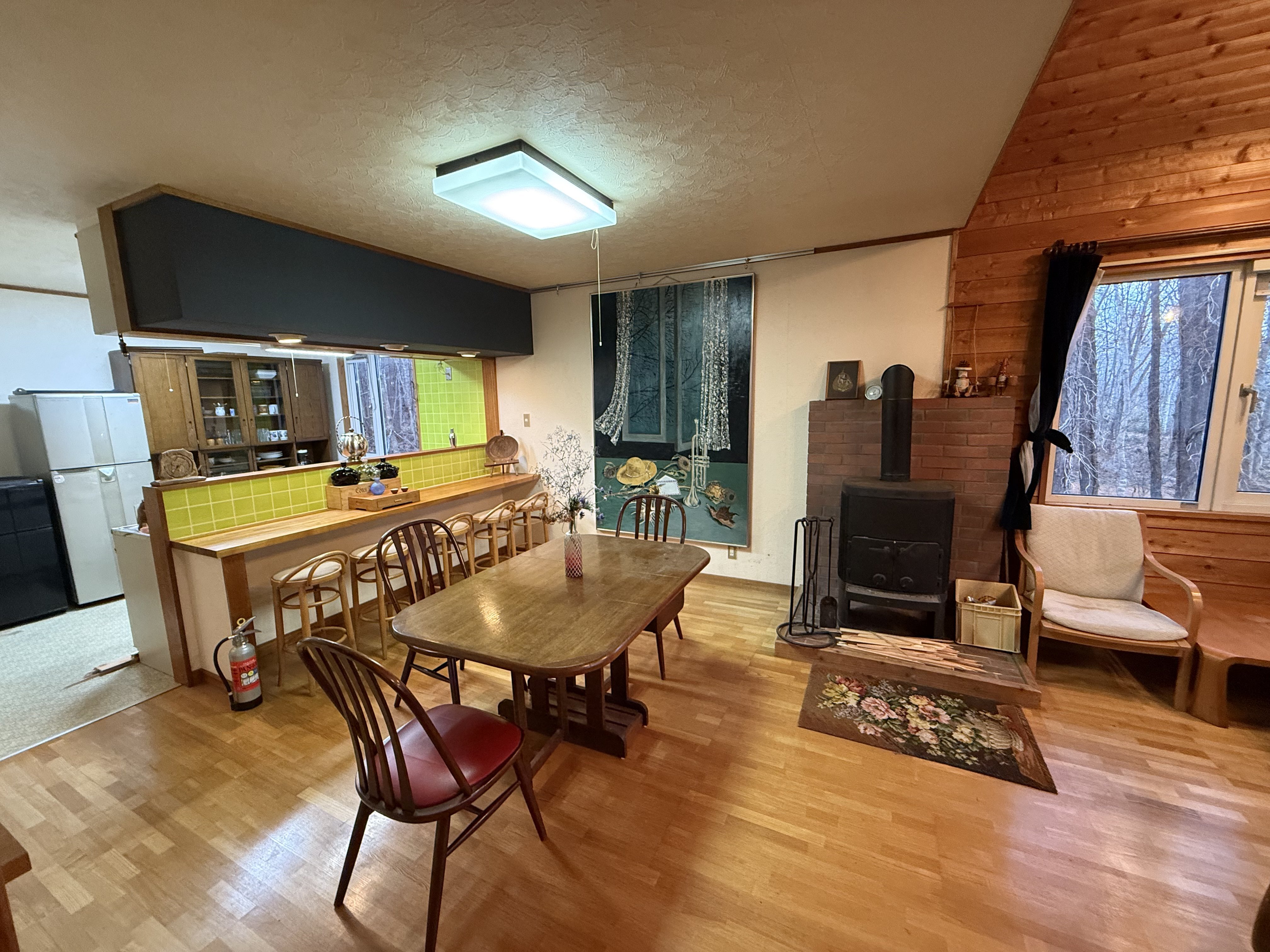 Inside, relax in the light ,warm kitchen-living space equipped with a functional wood burning stove to help add to the cosy alpine atmosphere. Another special feature of the property is the relaxing natural onsen hot-spring area - imagine ending a day in the snow or hiking with a long soak in your own private onsen.